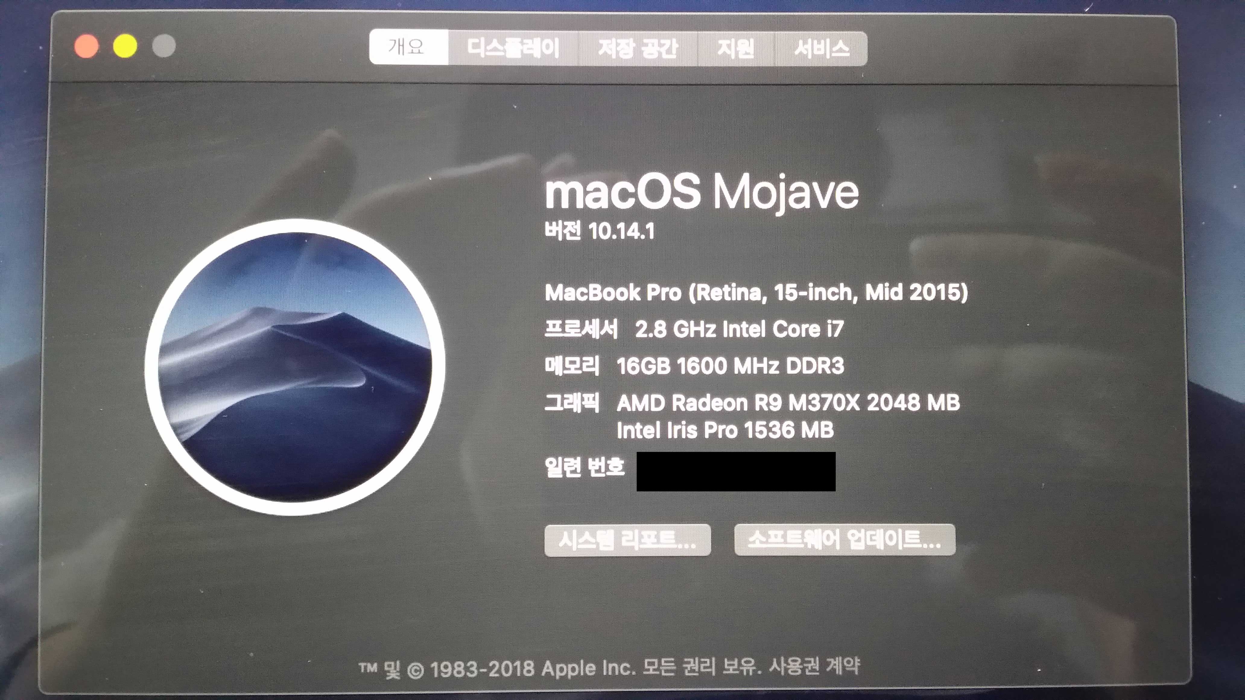제품 사양 : 맥북 프로 레티나 15인치 2015 mid 고급형